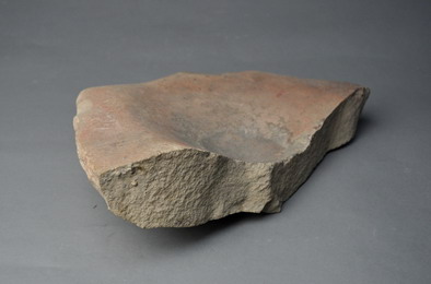 1958年河南省文物工作队在南召发掘出土的一件商代石臼残片。石臼纵40.50厘米,呈不规则的多边形,中间有明显的研磨痕迹。