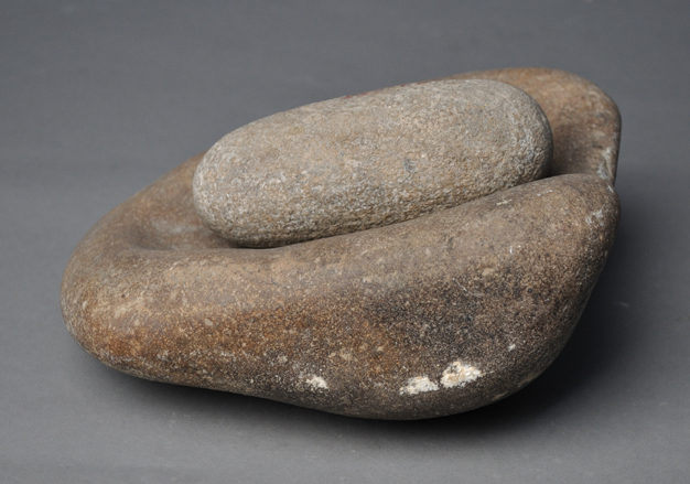 猜想二:这套石杵臼的臼宽只有16.6厘米、杵长也只有13厘米,一个成人来操作明显偏小,我们知道稍大点的杵臼加工谷物的速度应该更快、效果也会更好,那么这件石杵臼为什么不做得再大一点呢?