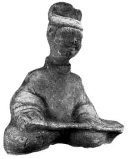四川绵阳弹琴俑(图12)[24]。东汉,四川绵阳出土,多件。“已被中国艺术研究院音乐研究所认定为弹琴的有三件,均被收入《中国音乐史参考图片》第十辑的古琴专辑。三件汉俑所弹的琴为两种形状:一种是头宽尾狭的长条状,另一种是已具有内收弧形琴项的长条状。它弥补了传世七弦琴所缺少的最古形制”[25]。郑珉中先生认为:“东汉弹琴俑琴的音箱与左手指法,和后世的音箱、指法是完全一致的,是一脉相承的,经历了两千多年没有变化,从而证明琴在西汉东汉之间发生质变确是不可能的。”[26]