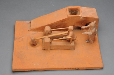 考古发掘出土的汉代陶碓模型很多,由于碓的结构比较简单,所以这些模型的结构和形制基本相同,这说明当时碓已经进本定型了。