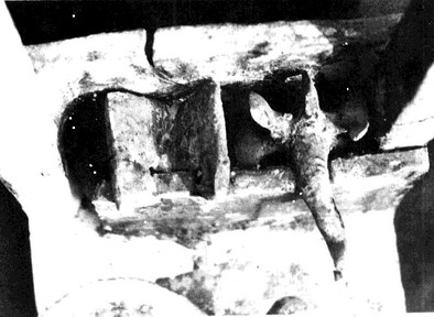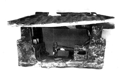1971年1月16曰,洛阳市东关旭升大队在平整土地时发现了一座东汉砖墓,出土了一件陶风车与陶米碓,器物高18.5厘米、长26厘米、宽22厘米。陶风车与陶米碓是由高槛、车箱、杵、碓架和底盘各部所组成。陶风车:车的上部有一个装卸粮食用的长方漏斗形高槛,高槛近方形启门的孔甚大,槛的两侧各有两个斜腿,便于装卸粮食和固定高栏位置。风箱为长方形,左端两壁上作有圆形曲轴孔,但未发现风扇。风车正面的中间下部,有一长方形出粮口。风箱后尾没有挡板,应该是出灰尘糠秕(bǐ)的口;米碓:左端为一个外方内圆的臼窝,臼置其中。杵上安有长杆,杆的右端被架在杵架上,架上有壁,以便舂人依靠。墓内的陶风车和河南济源泗涧沟出土的陶风车有些相似之处。⑫