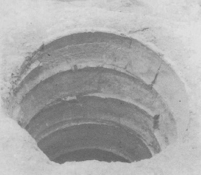 井甃(zhòu)虽多见于汉代遗址中,但却以河南新郑郑韩故城内外发现战国陶井圈(图四)为最早。新郑郑韩故城已发现的10余口水井井圈,少则六七节,多则十余节。井甃一般上下口径相等,这种井圈要求周边质地均匀,可以将周边的侧压力均匀地分散传递。(图五)