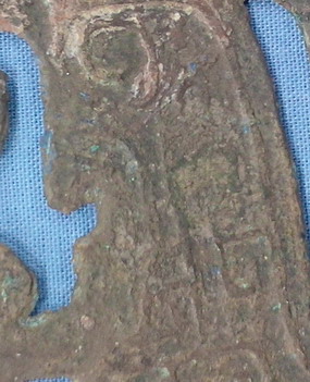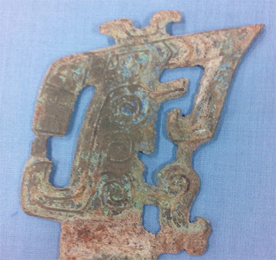 图3 “爰”字纹戈内后部镂空钩喙歧冠鸟纹