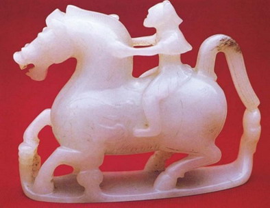 图6 陕西咸阳出土羽人骑天马玉雕