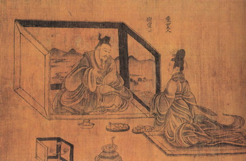 图12 山西大同北魏墓屏风漆画中的三枝灯