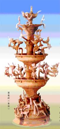 彩绘陶百花灯,陶质,东汉,陶器,通高92厘米。1972年洛阳市涧西区东汉墓出土。现藏洛阳博物馆。