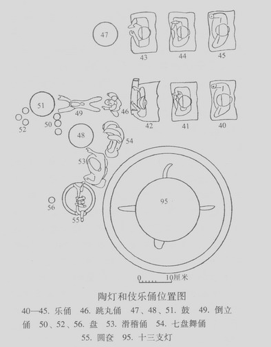 图23 百花灯和伎乐杂技俑出土位置图