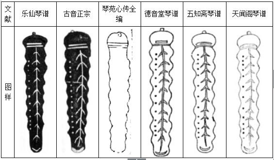 表1  主要明清文献记载的蕉叶式古琴图样