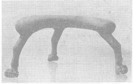 几面弧形条状[13],下有三兽足。弧面长74厘米,宽9厘米。背面呈凹槽状,中部厚2厘米,四面厚4厘米,几高24厘米。