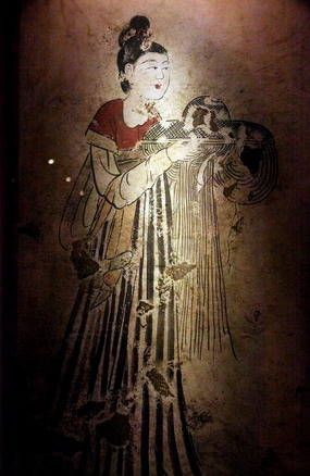 图一 燕妃墓后甬道南口西侧捧羃篱女侍图