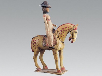 图六 郑仁泰墓出土彩绘头戴帏帽骑马女俑,现藏陕西历史博物馆