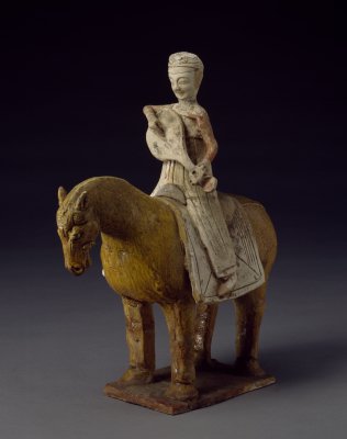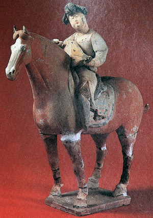图十三 1991年西安东郊金乡县主墓出土弹琵琶骑马女俑,现藏西安博物院