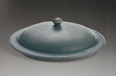 豆青釉器盖(图10)。高4.6厘米、盖径14.2。盖面圆形隆起,中间有一钉帽状圆纽,周沿下有子口。盖面施豆青色釉,釉层匀净,光亮莹润,并有细小片。