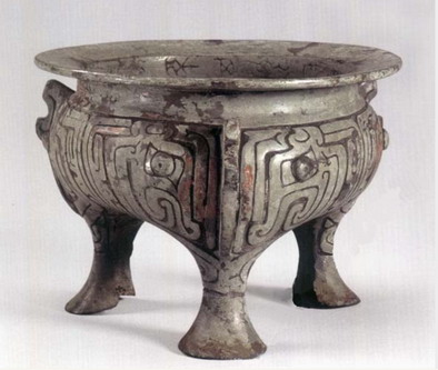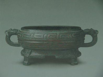 鬲从盨(图十一),西周晚期器,器作椭圆形,敛口鼓腹,兽首双耳,圈足外侈,下有四个矮小的兽首附足。失盖,口沿饰一周重环纹,腹饰瓦纹。器内底铸有铭文12行138字。
