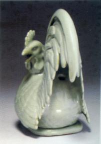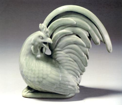这些以动物为造型的陶瓷器在生产工艺上都较为复杂,传统的成型工艺有模制、雕塑、捏制、分体粘合等不同手法。例如瓷鸡鸭采用雕塑成型法,头部、颈部、腹部有较小的羽毛,深浅不同的雕刻及篦划,背部、尾部的翎毛高高翘起,竭力的在模仿真实的动物。