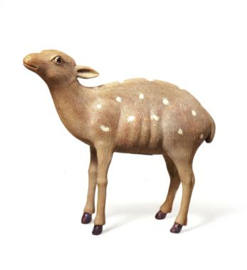 除了形态上的仿生,在釉色上也是不遗余力的模仿。鸭子灰白色的羽毛,黄色的鸭嘴、双蹼,黑色的眼睛。蟹通体都是灰色,唯有两鳌和六足的指尖是白色,尖利有力。暗黄色的小鹿身上,布满白色梅花斑点。黑色的四蹄,黑色的双眼,略露的眼白,更是衬托出眼睛的神态。