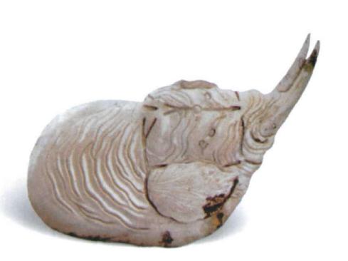 清乾隆白釉卧象 [8] (图9),北京市海淀区圆明园含经堂假山西部出土。