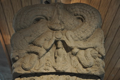 图十二  唐董宽造像碑碑首的迦楼罗与飞天形象