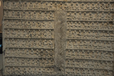 碑阳各层之间、碑阴与碑两侧面分多层刻并坐的小佛像,排列整齐,组成千佛形象。石窟与造像中刻“千佛”并非确指一千个佛,而是言其多之意。其目的和作用:一是表现大乘佛教“三劫三世十方诸佛”有无数无量,人皆有佛性,只要奉佛修行,人人皆可成佛的思想;二是供僧俗大众观赏佛相,诵念佛名,这样可以生往极乐世界;三是千佛的形象使整个碑体的雕琢不留素面,起艺术装饰作用。