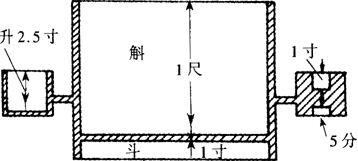 清代康熙皇帝亲自主持编纂了《数理精蕴》,其中所列度量衡表以尺度定容量和重量,即:铁升、斗、斛,以寸法定容积之准。升方三十一寸六百分,斗方三百一十六寸,斛方一千五百八十寸,两斛为石,方三千一百六十寸。