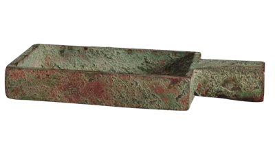 商鞅进行第二次变法后,颁布了统一度量衡的命令,亲自监制了一批度量衡标准器具发至全国各地。现存于上海博物馆的商鞅铜方升(图3),便是证经补史的珍贵实物资料。该器全长18.7厘米,内口长12.4厘米,宽6.9厘米,深2.3厘米。器壁三面及底部均有刻铭,左侧刻“十八年,齐□卿大夫众来聘,冬十二月乙酉,大良造鞅,爰积十六尊(寸)五分尊(寸)壹为升。”器壁与柄把相对科“重权”二字。底部刻“廿六年,皇帝尽并兼天下诸侯,黔首大安,立号为皇帝,乃诏丞相状、绾,法度量则不壹歉疑者,皆明壹之”。该器是商鞅任“大良造”时所颁发的标准量器。底部加刻秦始皇二十六年诏书,证明秦始皇统一中国后,仍以商鞅所规定的制度和标准统一全国的度量衡。秦二世时继续统一度量衡,量器的形制除了长方形铜升外,小型铜量多呈椭圆形,量值分别为1/2斗量、1/3斗量和1/4斗量。《墨子·杂守》中记载,当时的军队分配粮食就是以斗为基本单位,共分五等,按定量发给[5]
