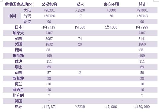 殷墟甲骨文自发现以来,已经近120年,到底出土了多少,学者们众说纷纭。2006年,孙亚冰对甲骨进行了再次统计,指出甲骨文包括殷墟和殷墟以外共计出土13万片[6]。孙亚冰文章发表时,故宫博物院公布的院藏甲骨为大于4700片。2010至2014年故宫藏品清理所编《总目》统计为22463片,2016年“故宫博物院藏殷墟甲骨文整理与研究”项目组年度工作报告提出为21280件[7]。因此,孙亚冰原统计数中,公私机构的数量应加上17,000片故宫博物院的数量,而去向不明栏目中应相应减去。此外,鉴于自殷墟发掘以来,盗掘活动不止,流散到私人和国外的甲骨无法准确计量。综合董作宾、胡厚宣、陈炜湛、刘一曼、孙亚冰等的统计,殷墟出土甲骨文的数量暂定为15万片以上是比较客观的(详见下表)[8]。(上文所说“片”的计量单位,是指有刻辞的甲骨文数量,无刻辞的不在统计之列。本文中提及的片,均指有刻辞的甲骨。)