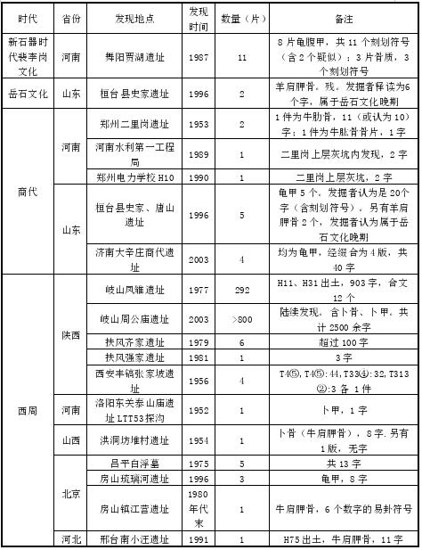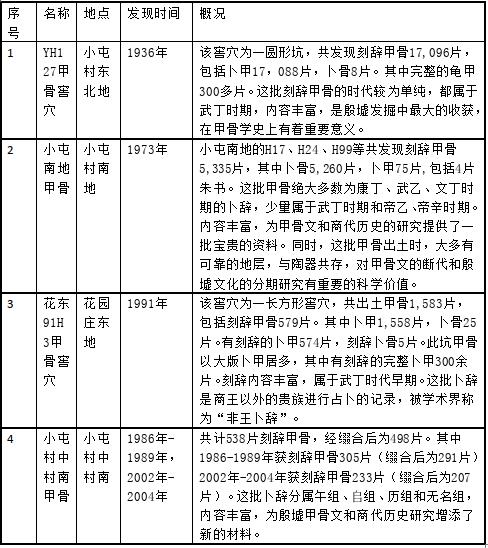 表一殷墟甲骨文的4次重大考古发现情况表