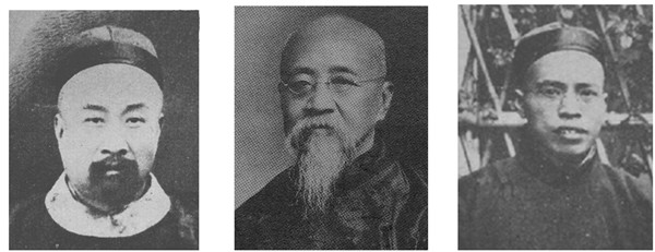 图三  殷墟甲骨文发现者王懿荣(左),考订甲骨文出土于安阳殷墟的罗振玉(中),以殷墟甲骨文考证商史为信史的王国维(右)