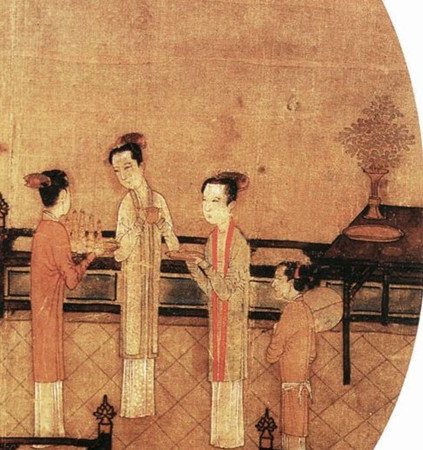簪花:宋人盛行簪花习俗。牡丹、茉莉、兰花、菊花等皆是女子簪花的常见花材,《武林旧事》:"六月茉莉为最盛,初出之时其价甚穹,妇人簇截图,多至七插,所直数十券,不过供一饷之娱耳。"一些名贵稀有的花品也常被簪戴。且每逢佳节必簪花。女子日常皆簪花,不仅女子簪花,男子亦簪花。这是宋代独特的一种风尚。宋代文人墨客有诸多关于簪花的记载,苏轼便有"人老簪花不自休,花应休上老人头"等诗句。此外,在宫廷的各种重大活动中,皇帝也常常将赐花佩戴作为一种奖赏。历史上便有宋真宗亲自为大臣戴花的记载。簪花被视为一种恩宠,上行下效,簪花习俗因此在民间也逐渐盛行。不仅指佩戴鲜花,也常常佩戴绢花。