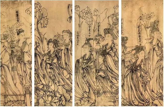 1、瓶式花器。宋代陶瓷花器中,以瓶类造型最多。宋代制瓷业迅猛发展,各大窑口几乎都生产专门用于插花的花瓶。目前文献可见的“花瓶”一词便出自北宋,《琐碎录》记载“冬间花瓶多冻破,以炉灰置瓶底下,则不冻。”宋代花瓶的造型以胆瓶、玉壶春瓶、梅瓶、琮式瓶、筒式瓶、壶与罂器型等最为常见。北宋武宗元《朝元鲜仗图》人物所持多种式样的花瓶(图5)。花瓶通常贮水较多,便于插花。一般来讲,宫廷及厅堂的堂花通常选择大花瓶,插置花材较多,花束较大,华丽富贵。书斋等屋室则使用小瓶,花材相对较少,也可插独枝花卉。明代袁宏道认为:“大抵斋瓶宜矮而小,如花觚、觯、尊罍、方汉壶、素温壶、匾壶、窑器如纸槌、鹅颈、茄袋、花樽、花囊、蓍草、蒲槌,皆须形制短小者,方入清供。不然,与家堂香火何异,虽旧亦俗也。”从这段论述可以年出明代插花与宋代插花花瓶选择上的延续关系。宋代书斋及文人插花崇尚单瓶独枝的插花,强调清、雅、洁,重视线条的疏朗,如一枝梅的形式。如宋代方回《丙申元日五绝》记载:“昨夜隔年书未点,瓶梅灯畔一枝低”日本南禅寺藏南宋马公显《药山李翱问答图》即可看出宋人瓶插的韵致(图6)。