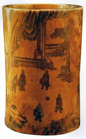 图三  宋代象牙雕刻“蹴鞠图”笔筒