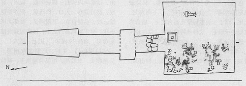 图1 墓室平面图  1.天王俑
