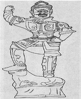 图4  巩义市常庄变电站天王俑线条图