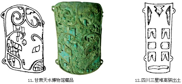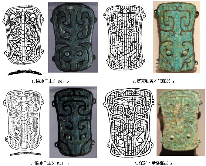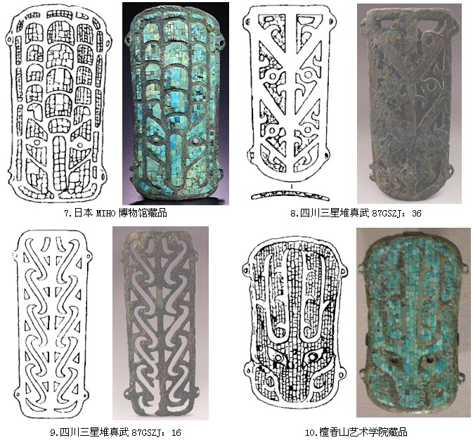 杜金鹏先生对比了二里头出土的镶嵌绿松石龙形器,认为铜牌饰是它的另一种表现形式,是夏人崇拜龙的表现。[26]而三星堆的铜牌饰是“夏人亡国后逃难到四川的遗民或其子孙把这种把这种工艺带到了巴蜀,使其得到发展”。[27]
