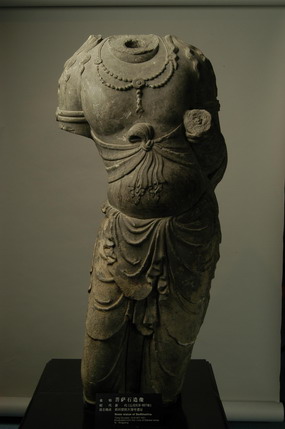 第二阶段菩萨像,以大海寺菩萨残像(图十一)为代表,胸、腹、臀部隆起十分显著,相对于武周时期造像体态变得丰腴,但肌肉具有丰富的弹性感,形体充满生气。
