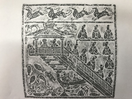 图4  1976 年山东省滕州市城郊马王村出土的水榭画像石