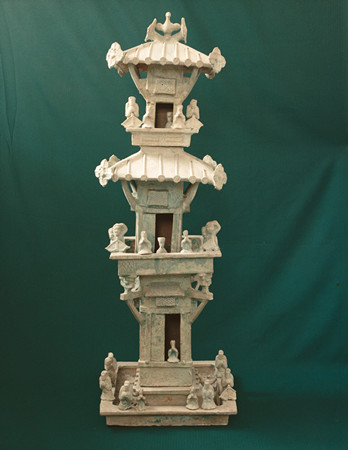 图15 淅川县宋湾河林场出土三层绿釉陶水榭