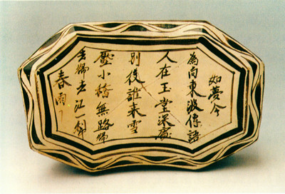 瓷器是中华民族的伟大发明,是中国对世界文明的伟大贡献。诗,作为一种文学体裁,在中国亦是历史悠久,通过有节奏和韵律的语言反映生活,抒发情感。这两种具有中国特质的文化产物,被磁州窑巧妙的结合起来,形成了别具风格的“瓷诗文化”。磁州窑的闪亮点不仅在于它浓郁的民俗气息,而且瓷器表面书写诗词曲赋等文学内容也空前的流行,这些文字大多为韵文,故泛称为诗。瓷诗文化为我们研究民间文学发展史提供了鲜活的资料,也为我们探究特定历史时期的民俗文化展示了一个别样的窗口。