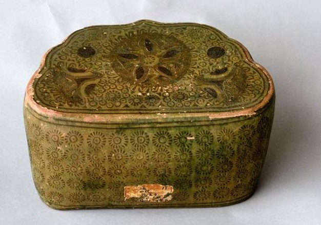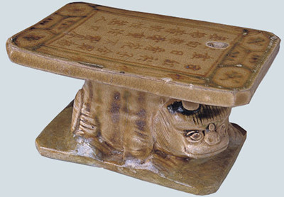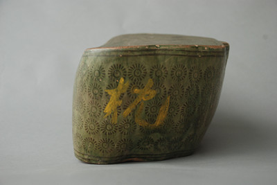 图4  长沙窑褐绿彩绘狮座诗文瓷枕