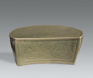 关于瓷枕的描述,古代典籍中并不少见。最著名的是南宋女词人李清照《醉花荫》中的千古名句:玉枕纱厨半夜凉初透。一下子把人们带进无限的忧思之中,这里的玉枕便是古代的青白釉瓷枕,也有学者认为是宋代龙泉窑所烧瓷枕。可见瓷枕是古代人们不可或缺的生活用品。