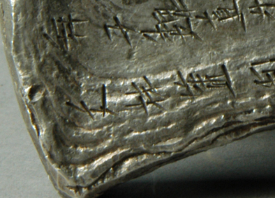 猜想一:“解盐使司大安三年二月十二日”银铤正面两端为何会呈现波状纹?