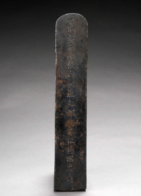 “解盐使司大安三年二月十二日”银铤上錾刻的铭文:“解盐使司大安三年二月十二日引领牛淮朝 客人石顺 中纳银肆拾玖两柒钱 行人陶实城 秤子魏直 才 文林盐判 张 每两八十陌钱二贯 宇七 又一钱”。银铤铭文虽然只有五十八字,但其内容却显示了该银铤的性质、盐产地、盐池的管理机构、盐务职官名称及具体办事人员的名字、白银的实价及铜钱省陌规格等信息。