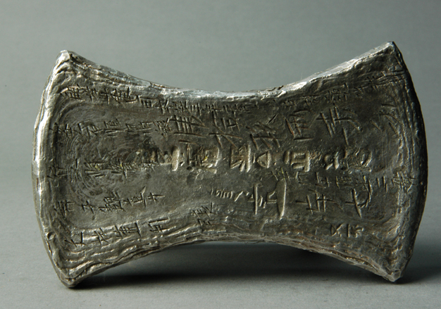 到了宋代,白银已经不受区域限制而通行全国,其表现形式主要是两端平、或是圆弧,中部束腰的银铤,另外还有银饼和银牌的形式。