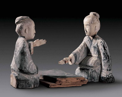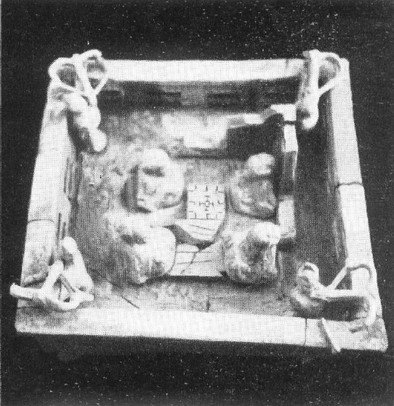 图七 甘肃省威武县出土的彩绘六博木俑模型