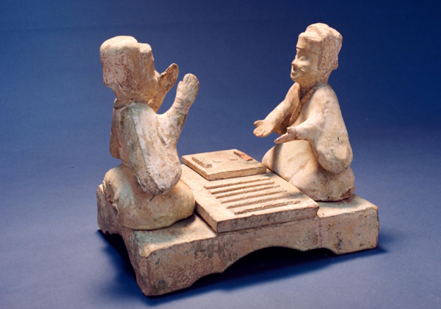 六博俑模型,陶器,东汉,长28厘米,宽19厘米,通高24厘米,1972年河南省三门峡市灵宝县张湾3号墓出土。
