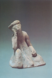 图3 洛阳孟津北陈村王温墓出土的思惟胡俑 北魏