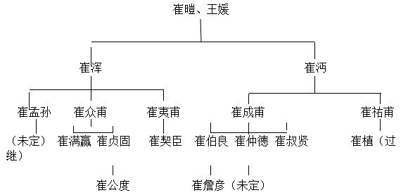 崔暟家族结亲,沿袭了崔氏的门第观念。崔暟之妻王媛出自太原王氏。子辈中长子崔浑妻卢梵儿出自范阳卢氏,次子崔沔妻王方大也出自太原王氏。孙辈中崔夷甫妻李乔仙出自陇西李氏,崔祐甫妻出自太原王氏。女子出嫁也大多选取“卢、王、赵、李”家族之子为婚。[14]