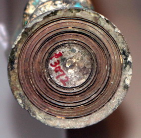 该剑剑格基本与剑身平齐和茎上有双箍是这一时期青铜剑与后世剑在形制上的主要区别。于1974年出土的居延汉简《相剑刀》册记载:“欲知剑利善、故器者,起拔之,视之身中无推处者,故器也。”关于“推处”,马明达先生认为是“剑格”。[2]后世剑的剑格远宽于剑身,便于直刺时的发力,同时也有利格斗时对手、腕的防护,而“故器”则没有推处,“故器”指的就是嵌绿松石铜剑这种类型的剑。《相剑刀》册中“无推处”的意思应是剑格与剑身同宽或基本同宽。