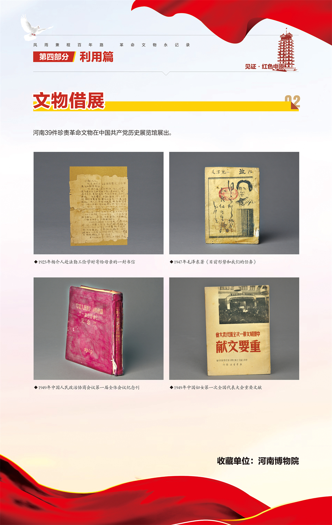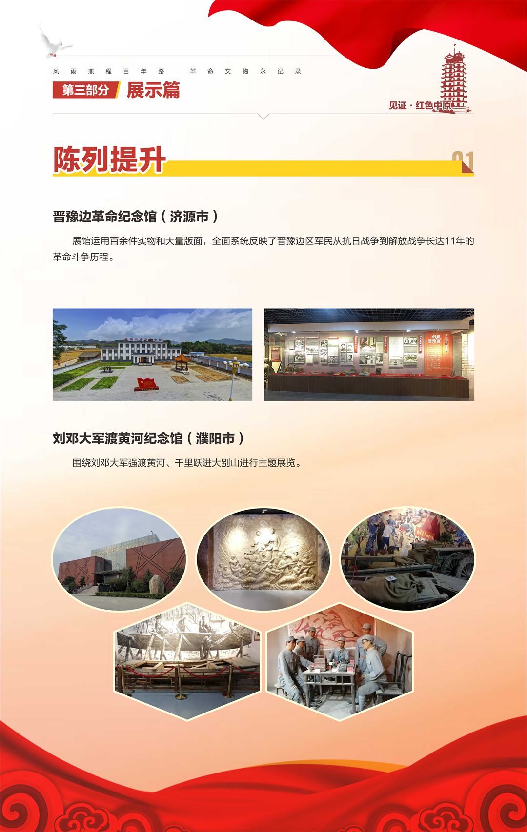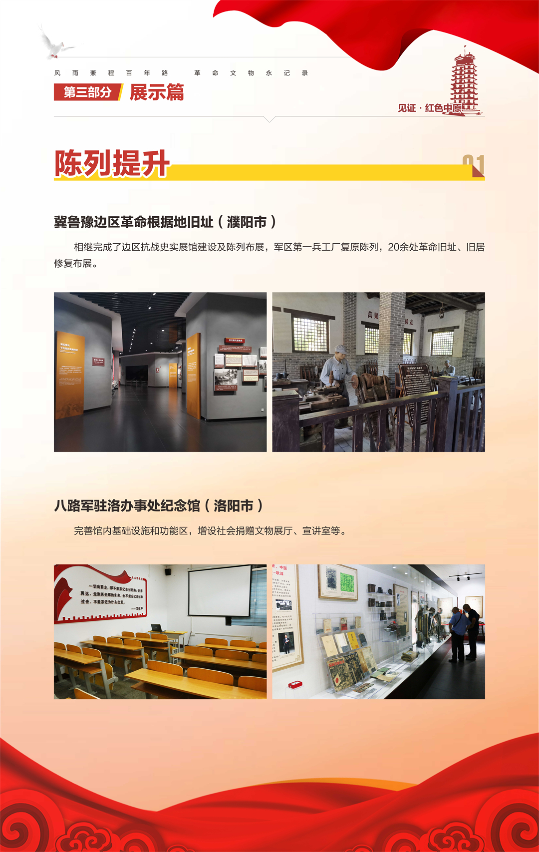 “河南省‘十三五’革命文物工作成果汇报展”是由河南省文物局策划组织,庆祝中国共产党成立100周年系列活动之一,旨在梳理“十三五”期间我省革命文物工作,展现主要成果,总结经验,宣扬优秀案例,传承革命精神,继续谱写“十四五”我省革命文物事业新篇章。