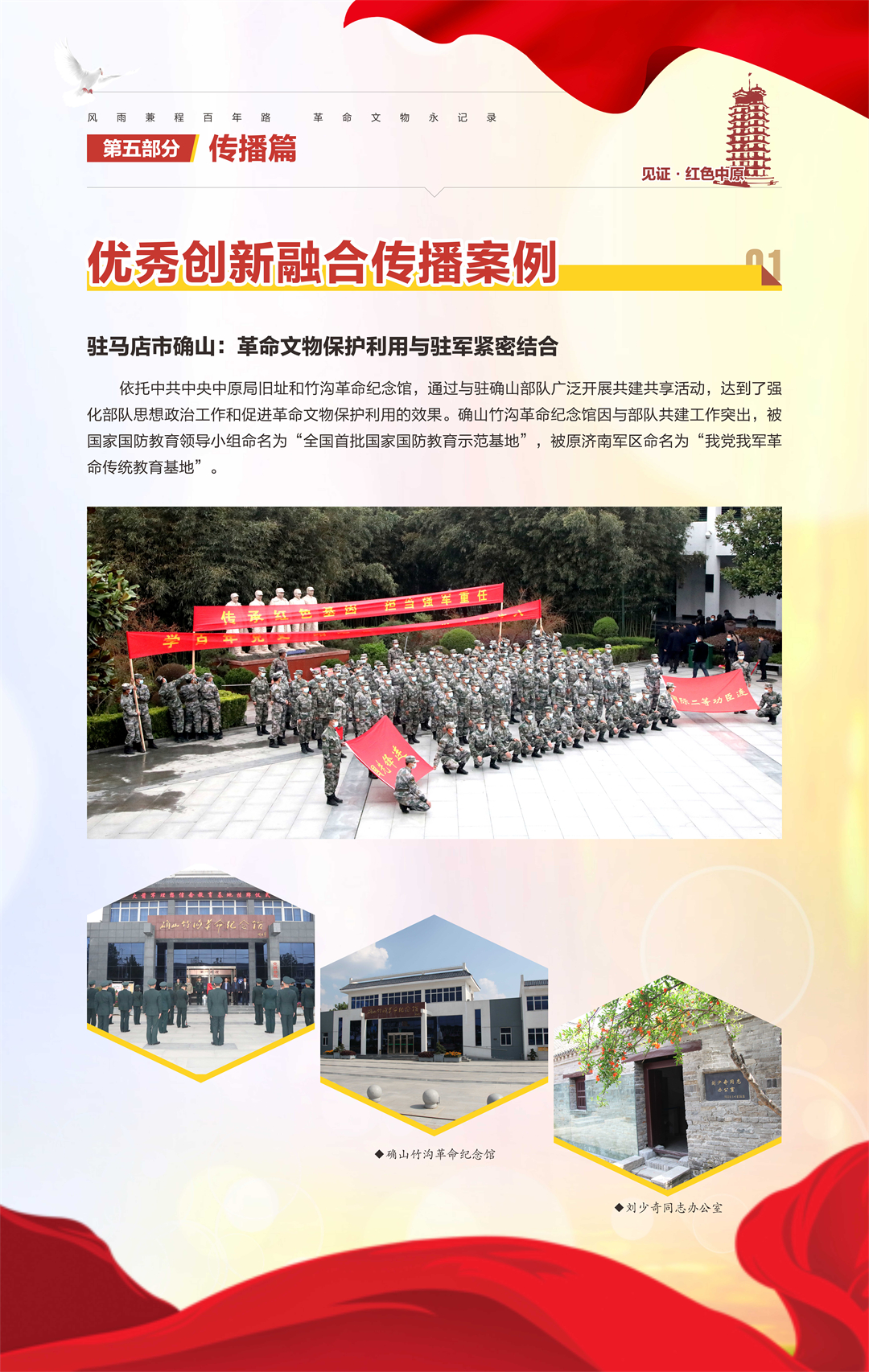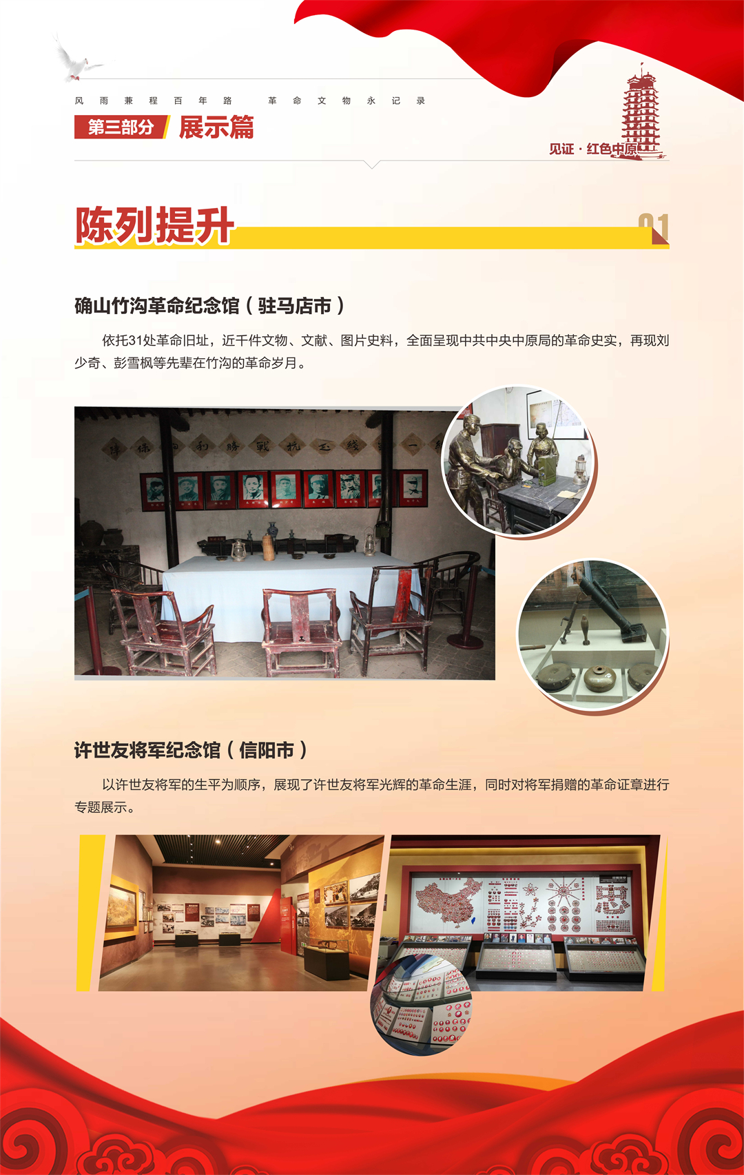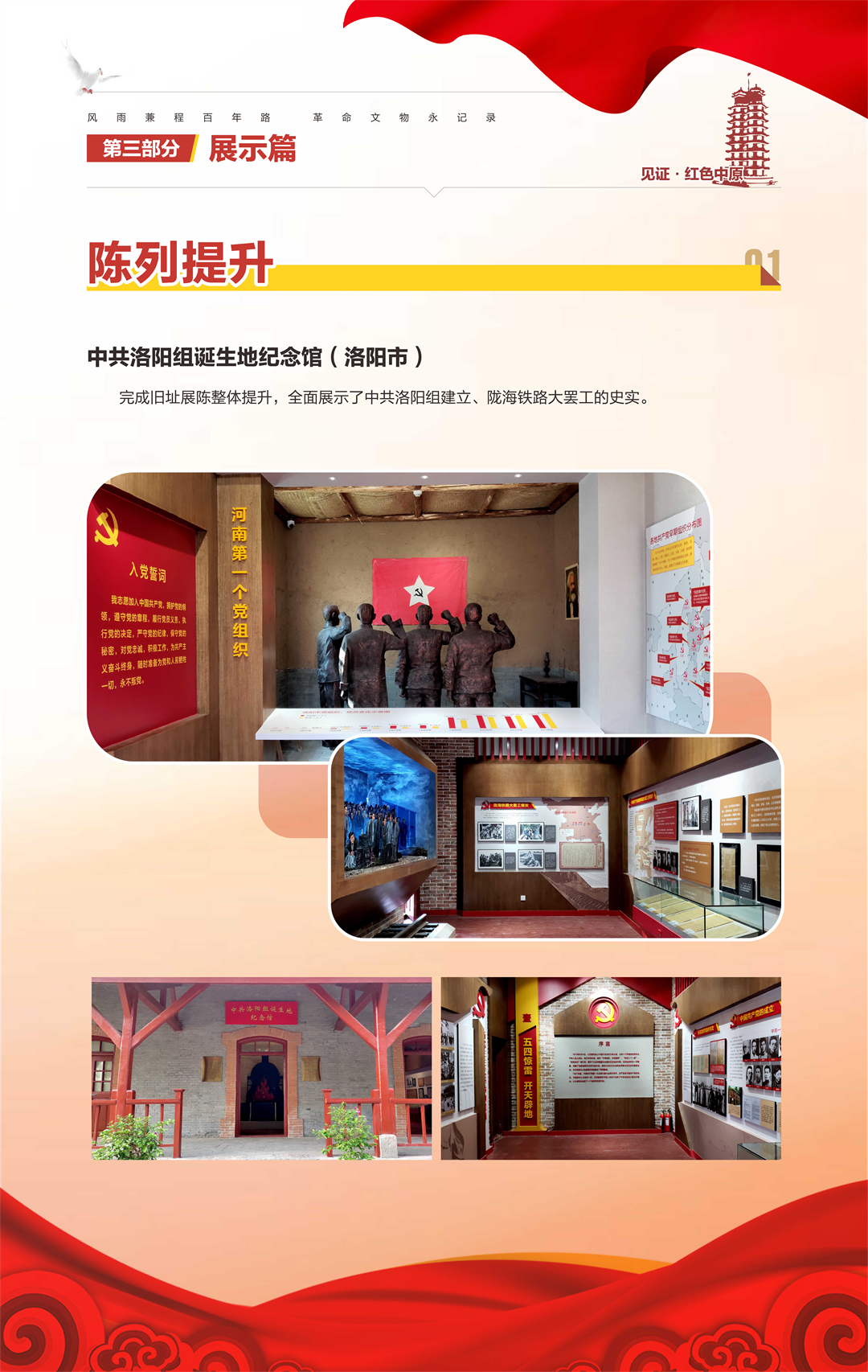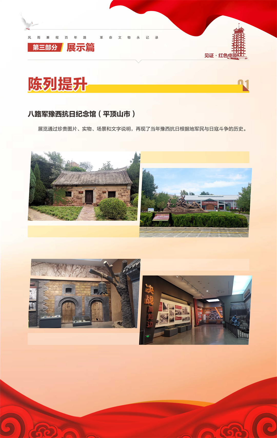 “河南省‘十三五’革命文物工作成果汇报展”是由河南省文物局策划组织,庆祝中国共产党成立100周年系列活动之一,旨在梳理“十三五”期间我省革命文物工作,展现主要成果,总结经验,宣扬优秀案例,传承革命精神,继续谱写“十四五”我省革命文物事业新篇章。